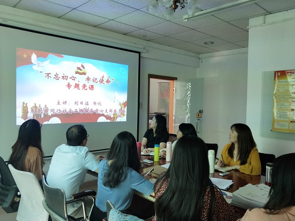 为深入开展“不忘初心,牢记使命”主题教育,根据上级要求,东莞市同行社会工作服务中心党支部委员迅速安排部署,第一时间于2019年11月15日上午,在机构总部会议室开展“不忘初心,牢记使命”主题教育培训活动。
