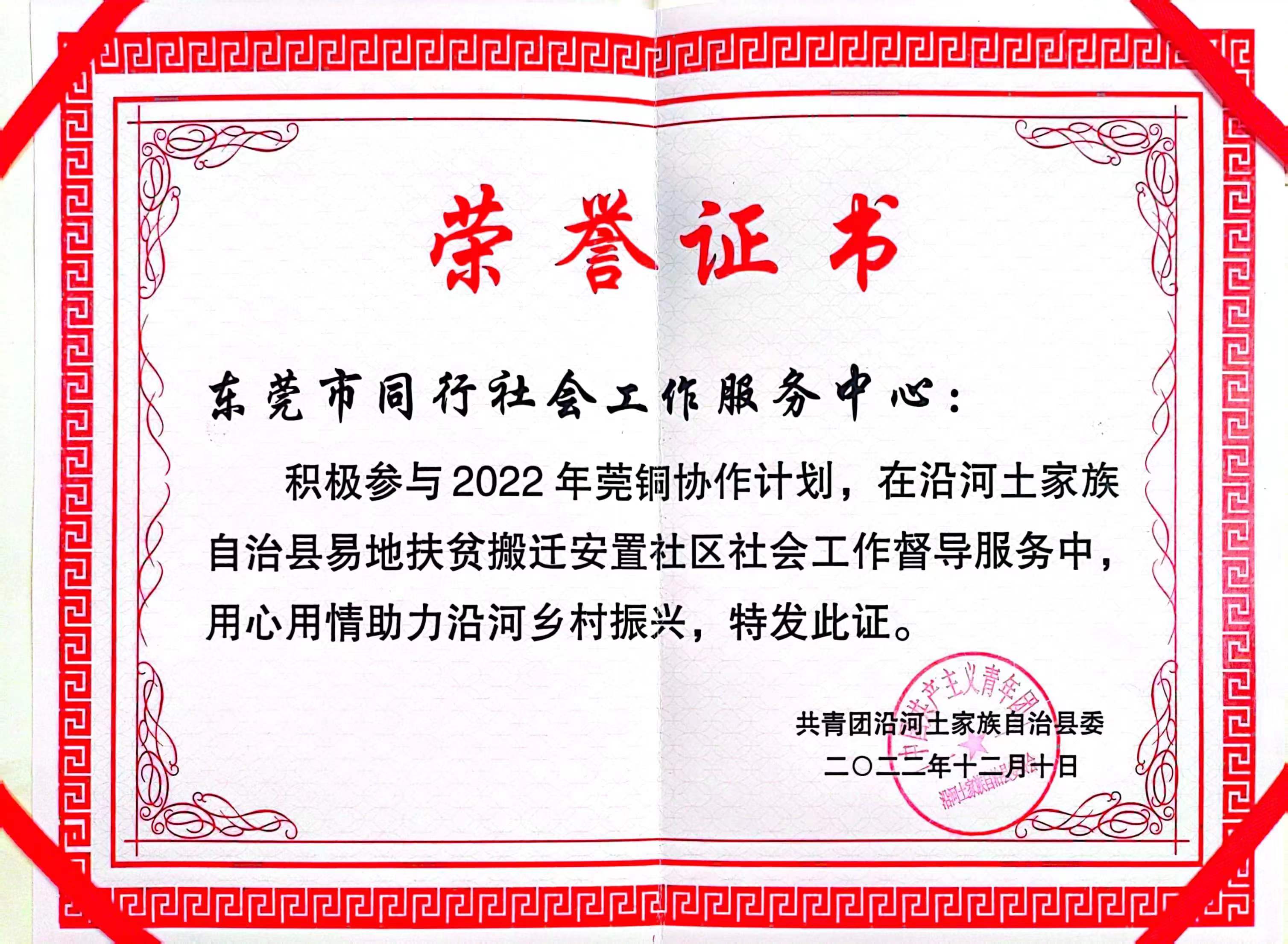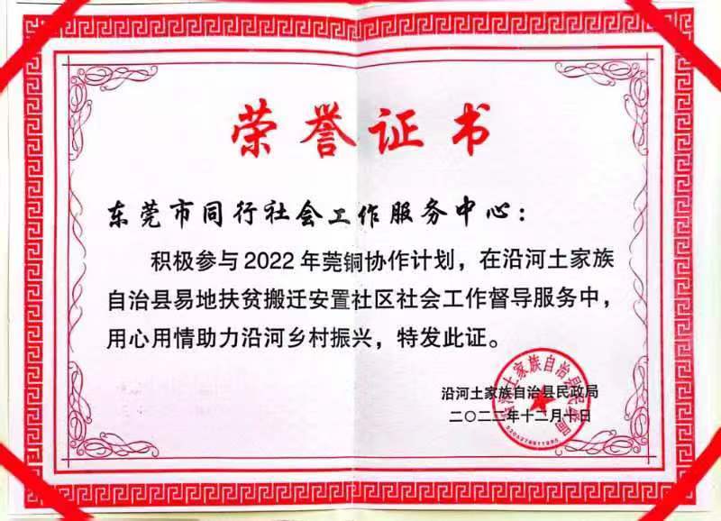 【机构总部】莞铜合作荣誉证书