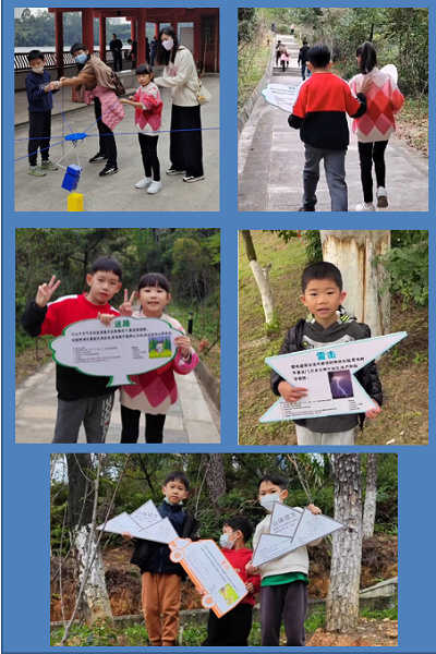 活动由两家庭配对成一组进行。每组带着配了不同情境不同安全隐患的KT板各自前往不同的环境中,由家长负责引导儿童通过地形特征展示可能遇到的危险情况,讲解应该如何进行防护及自救,并为小朋友的知识吸收拍一段小视频在群里展示,以达到在实景中完成野外安全知识体验学习寓教于乐,从而增长野外安全的知识,提升自救互救的技能。