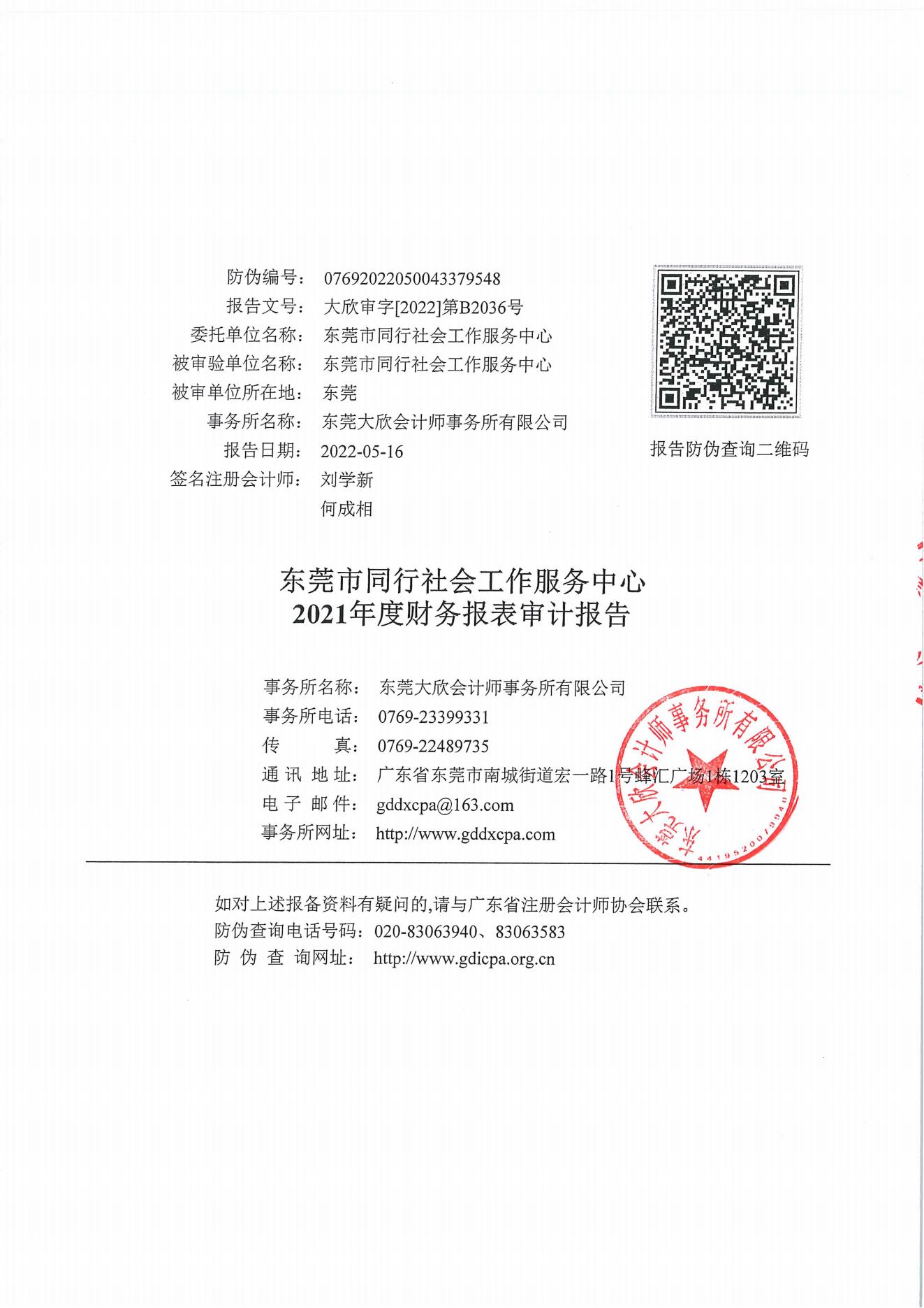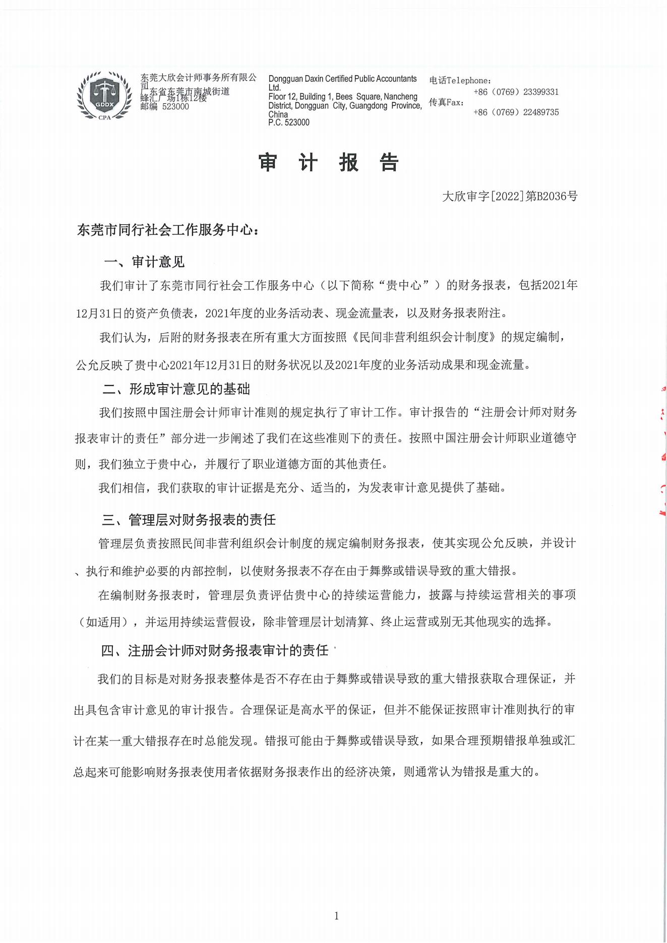 【同行总部】2021年度东莞市同行社会工作服务中心审计报告