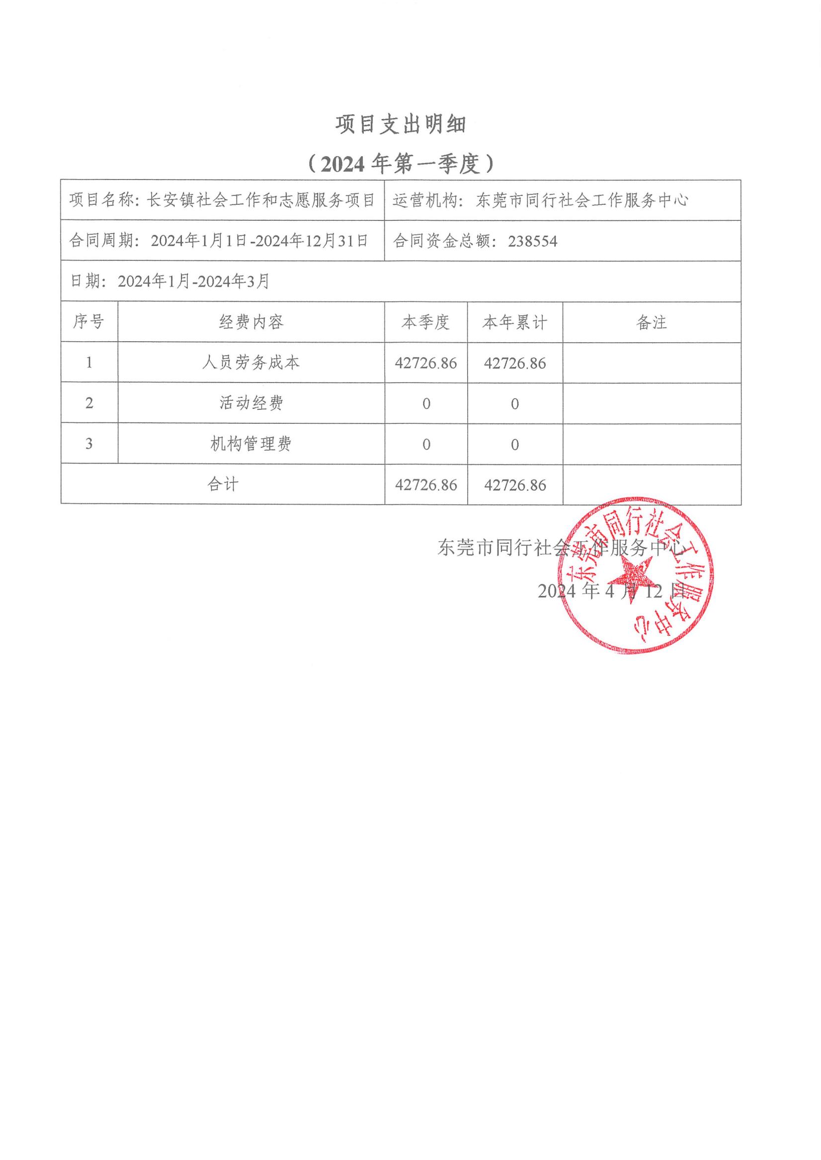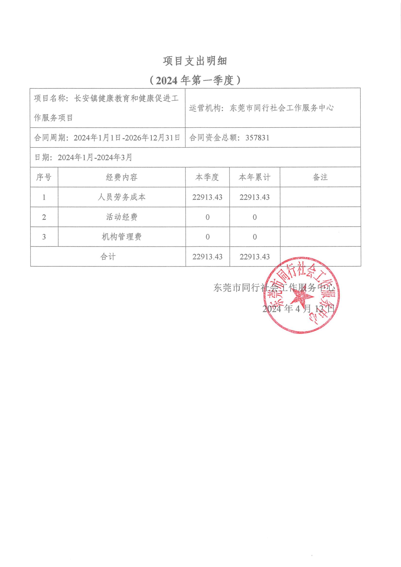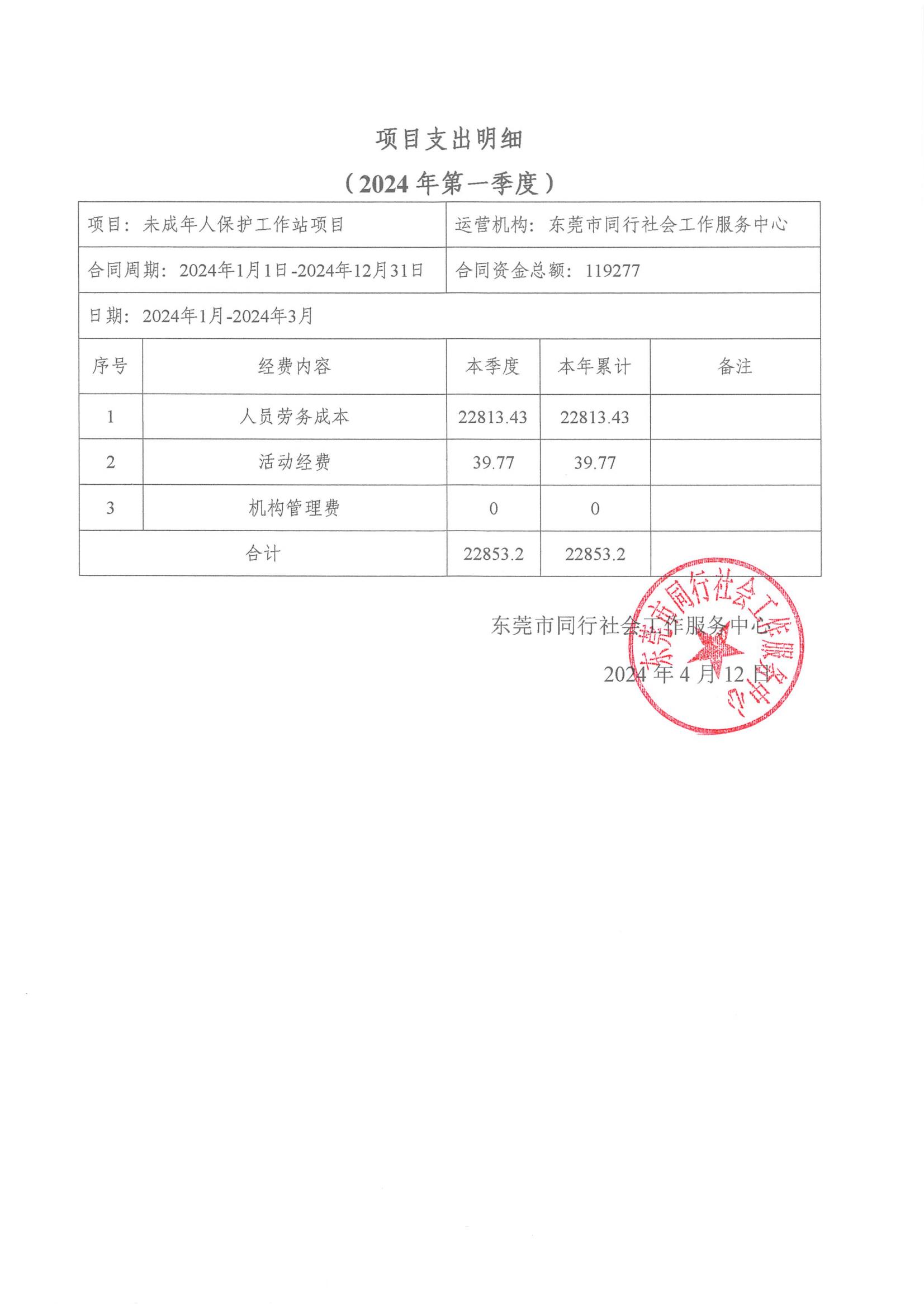 【同行总部】2024年第一季度财务公示