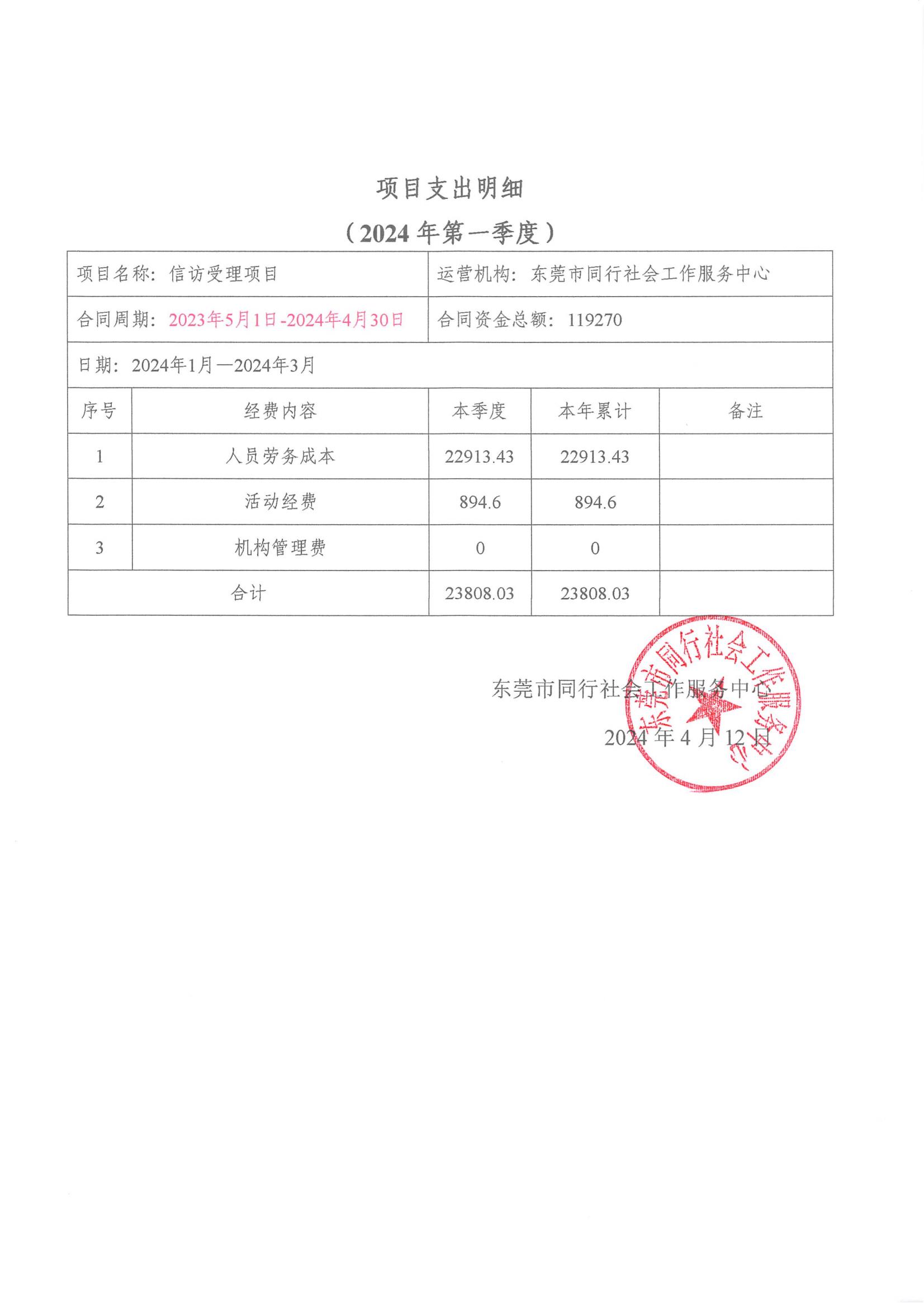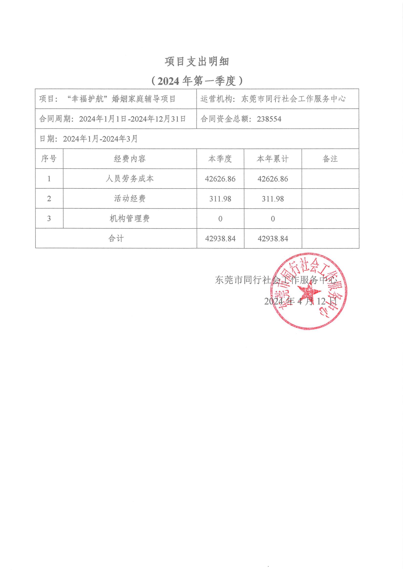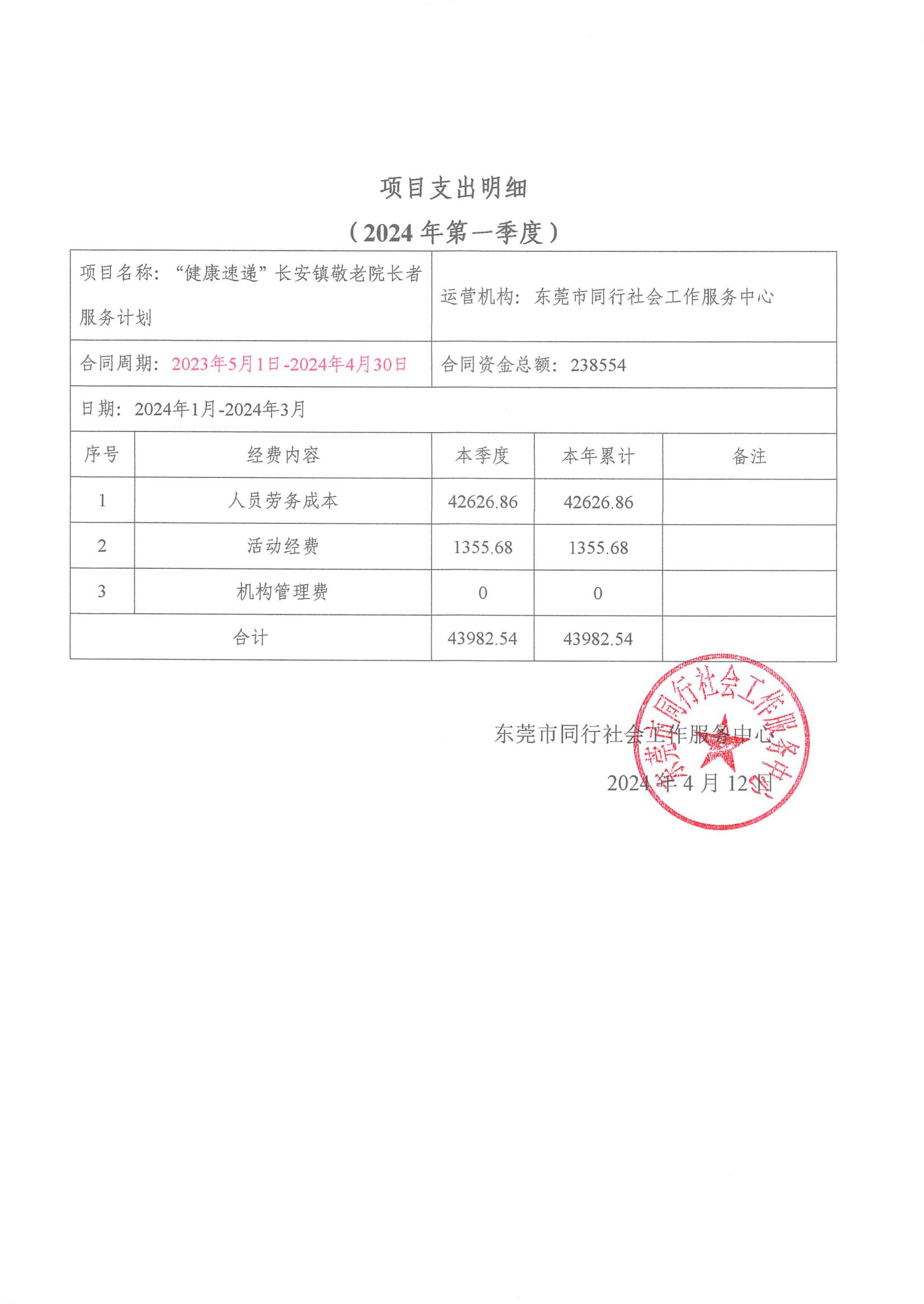 【同行总部】2024年第一季度财务公示