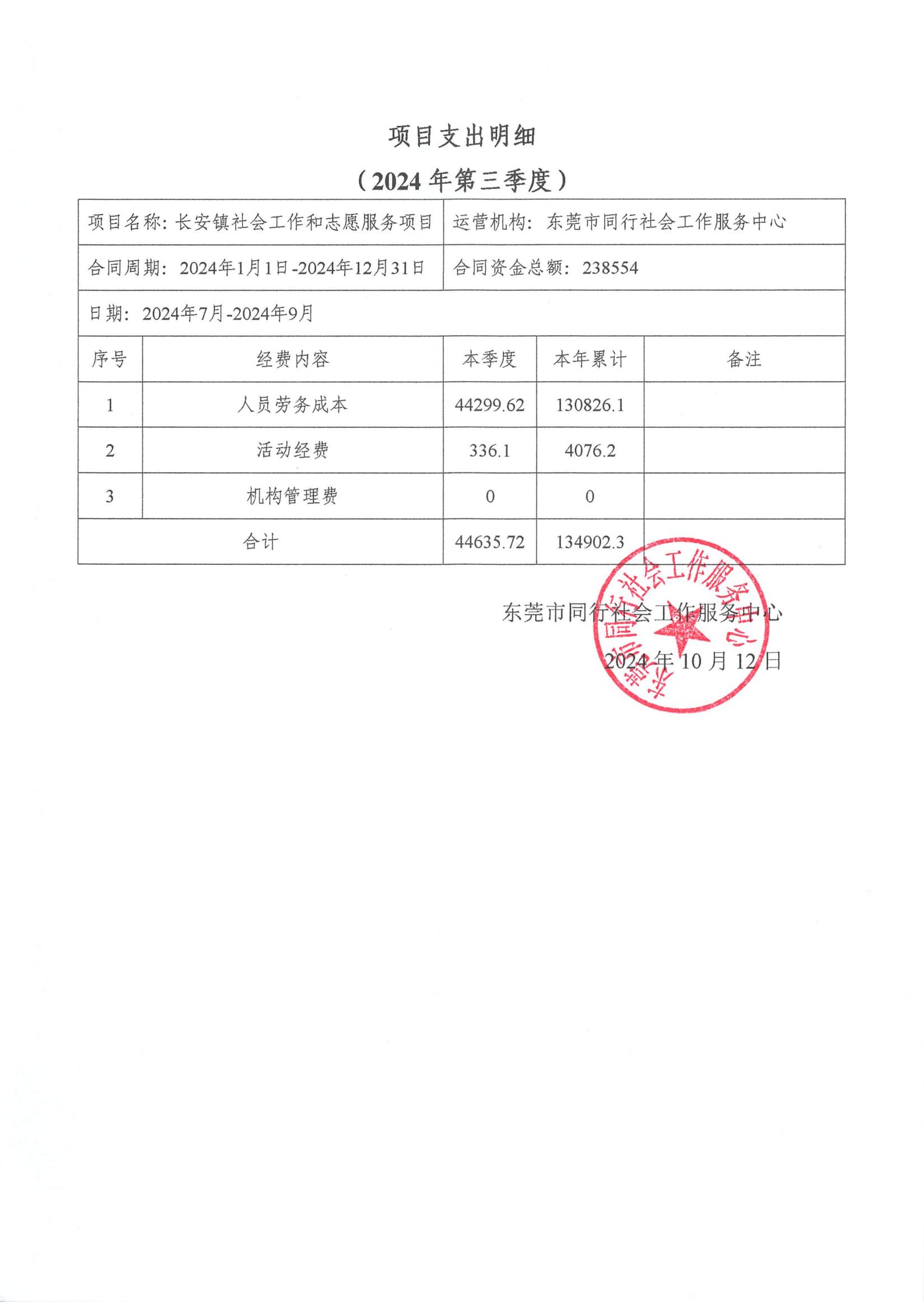 [机构总部]2024年第三季度财务公示资料