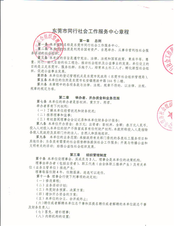 东莞市同行社会工作服务中心章程