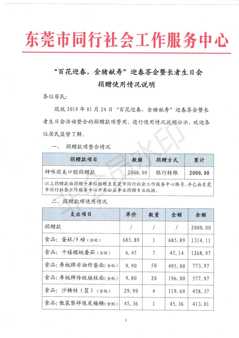 【同行捐赠】“百花迎春,金猪献寿”迎春茶会暨长者生日会活动捐赠使用情况说明