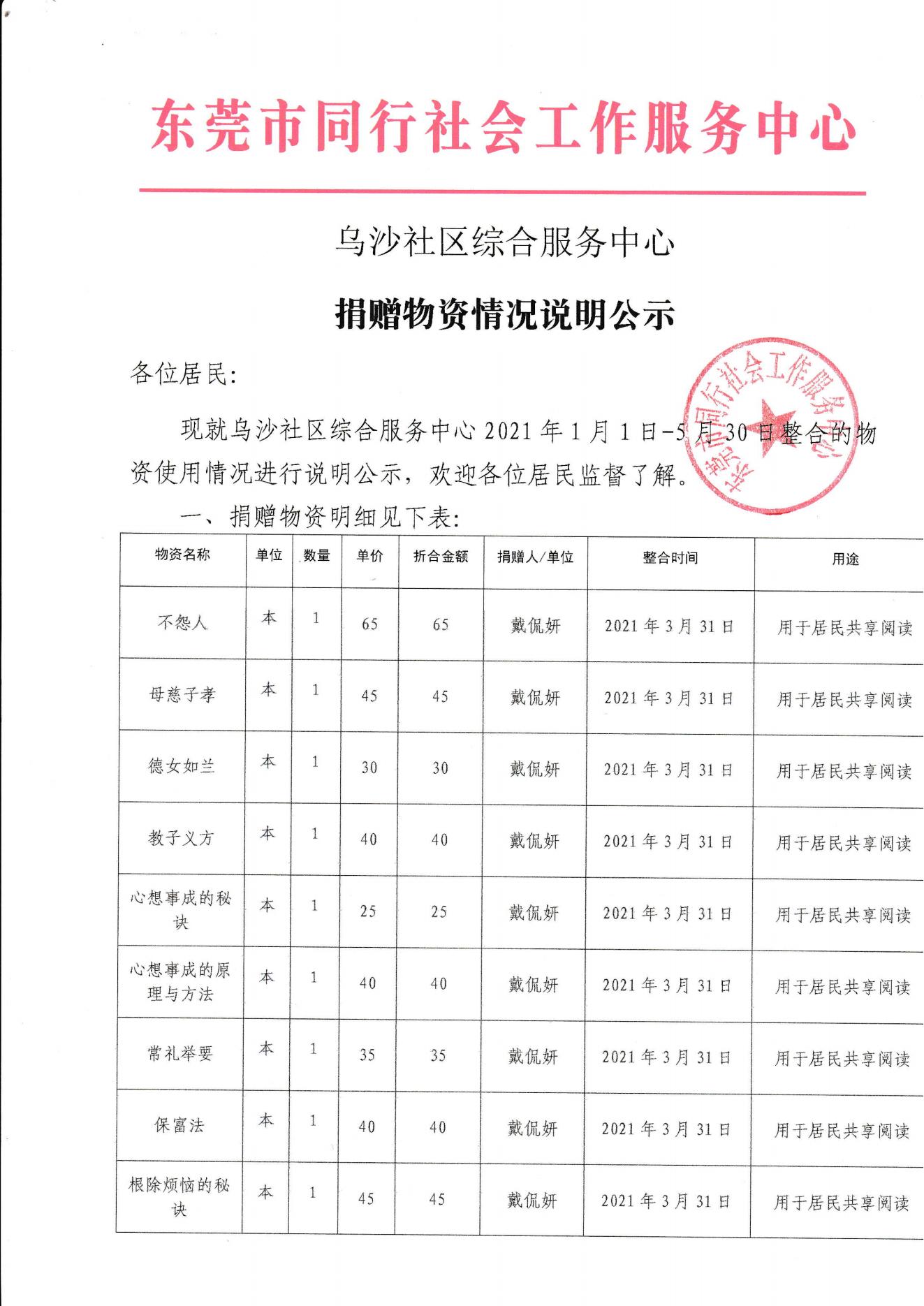 【乌沙社综】2021年上半年资源整合公示