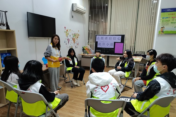 2021年2月5日,霄边社区综合服中心以高中生及大学生为主的青年志愿者是中心未来可重点培育的志愿者资源,在参与义教及协助各类活动开展能担任重要的角色。在访谈中发现,关于能力培训需求方面,这年龄的群体更偏向于以能力拓展为目标的团体活动,而形式方面以团体游戏、问题讨论的活动和小组最合适。有见及此,中心组织开展“义起成长”志愿者自信心提升小组,建立一个让志愿者自我成长,增强组员团队合作力的平台。