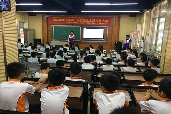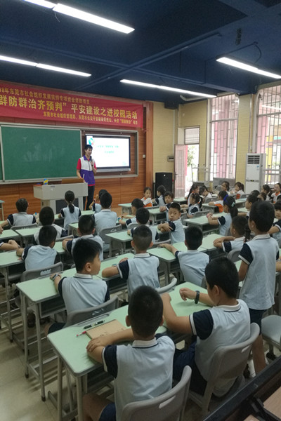 2018年6月14日早上11点10到11点50分,“群防群治”项目联合长安平促会在长安第二小学共同开展主题为“群防群治齐预判”平安建设之进校园活动讲。参加该课题学生为4年级5班和7班学生,共100人。