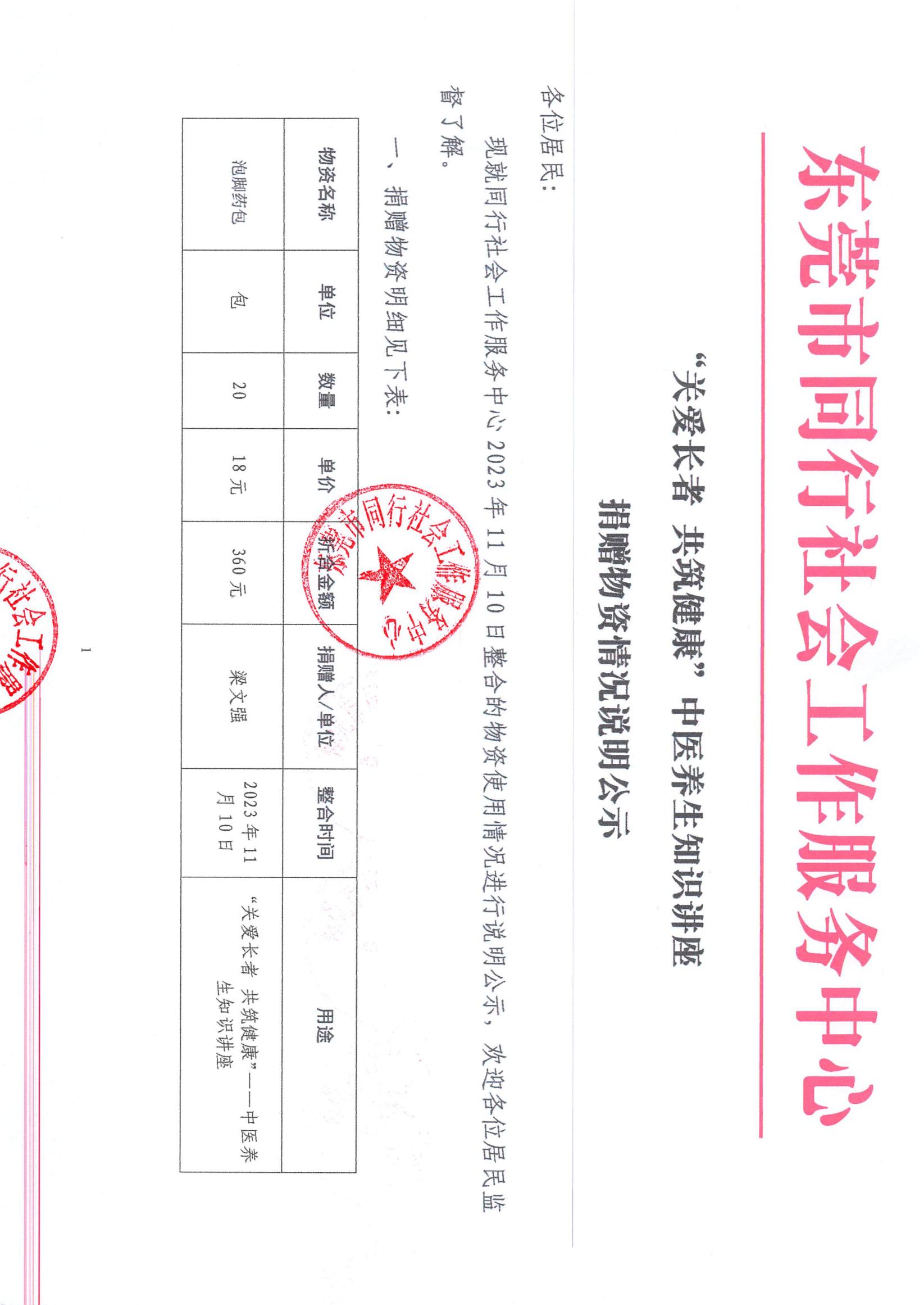 [项目]“关爱长者 共筑健康”中医养生知识讲座 捐赠物资情况说明公示