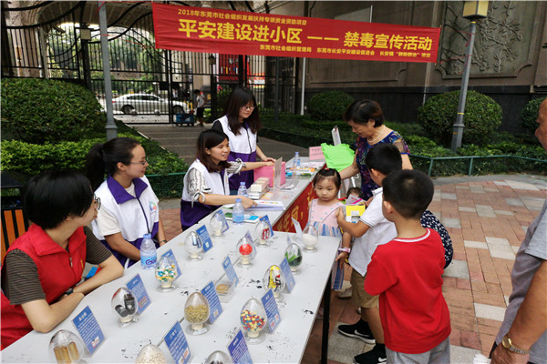为教育引导商住小区居民认识毒品的危害、提高拒毒、防毒的意识和能力、自觉远离毒品。同时,预防和减少家庭成员违法犯罪,营造平安和谐的社区氛围。群防群治项目社工联合长安镇平安建设促进会、长安镇社区康复中心于2018年7月10日下午4点至5点半在长安万达商住小区开展平安建设进小区-禁毒宣传工作活动。
