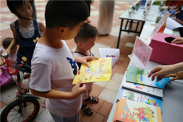 4图为居民在观看禁毒宣传画册