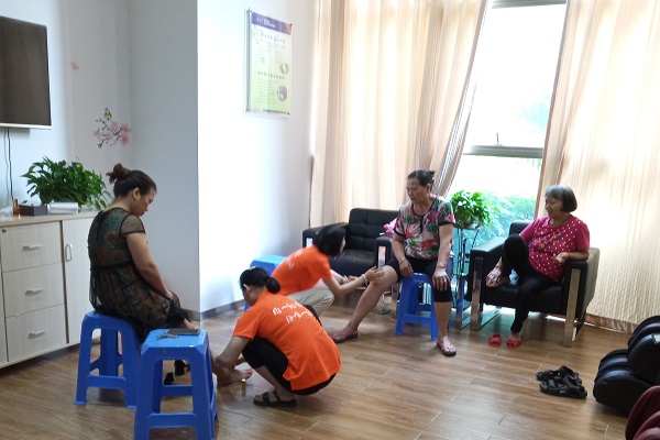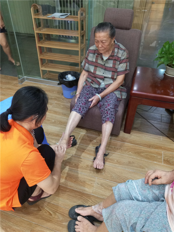 3图为:志愿者为老年人进行腿部护理