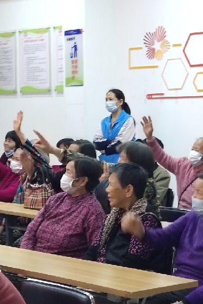 图为:长者居民积极举手回答问题