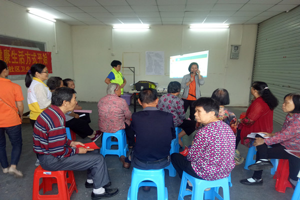 2019年4月20日早上7点多,来参加“走进社区,关爱老人”义诊活动的村民已坐满一屋子了。他们登记完个人健康信息资料后就相互聊着最近的健康状况,有的说自己虽然买了血压计,每天都有测量血压,但是还是喜欢来参加活动听医生讲课和咨询医生问题等。此次医生讲述“老年人食疗养生”知识,详细说明常见食物的营养价值,医生着重提醒村民在清淡人饮食之余更重要注意食物的全面营养饮食。医生讲完课后现场提问了几个村民,他们都能回答出来。紧接着第三个环节是为长者们测量血压、血糖。一对一进行指导,让居民了解高血压的危害,了解其用药、运动、心理、饮食等情况,使其学会自我健康管理。