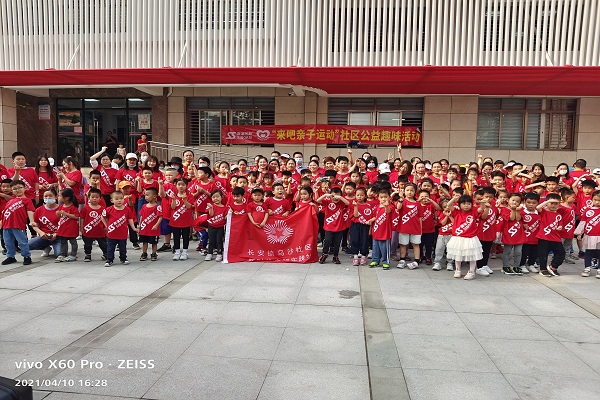 4月10日,乌沙社区综合服务中心联合斯波阿斯体育,在中心门口小广场开展了来吧亲子运动会活动,活动前社工在中心活动群中发布了活动信息,并在两天内完成招募,本次活动共有100组家庭前来参与活动。