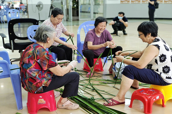 为了让大家在活动当天品尝到林旁粽,活动前,社工邀请到乌沙社区的陈阿姨协助提前准备好粽子。当天阿姨奶奶们围团而座,边做边聊,说起林旁粽,有说好多年没包林旁粽了,不知是否忘了,有说以前每年的五月初一都用林旁粽祈福等等,话题不断,热闹纷纷。