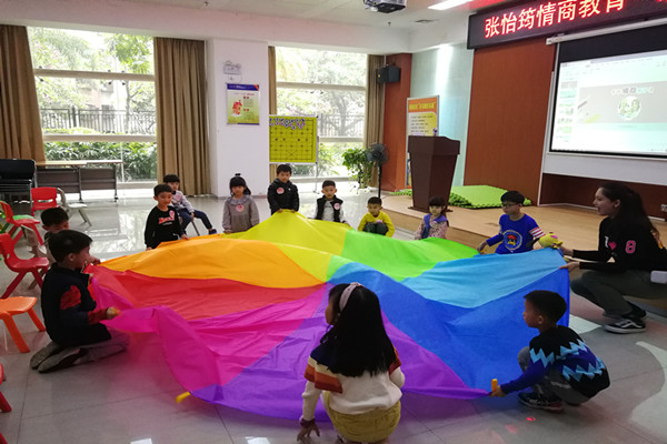 活动现场,将家长和孩子分开,但活动在同一时间进行,且活动主题也是一致。通过PPT和游戏教具“情绪调控、勇敢坚强、友爱交往、专注自控、自我保护“等,让孩子们知道如何控制情绪,使孩子能够进行人际关系管理;通过老师正面管教的情绪管理的方法和综合实践运用等多个环节引导家长们掌握科学有效的沟通方法及情绪管理策略。活动在舒服温馨的氛围带动着家长和孩子的成长。