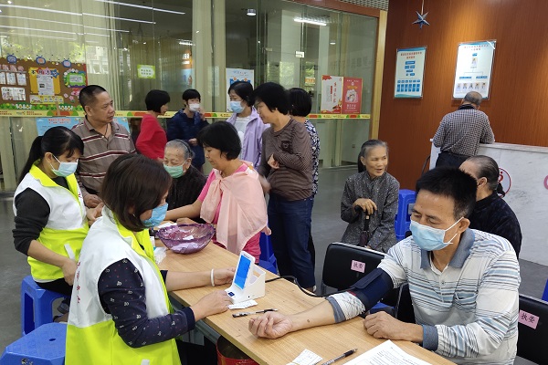 义诊活动的长期举办得到社区居民们的认可,是长者居民与中心直接交流的一个重要途径,更为长者居民的血糖血压起到监测作用。由于新冠疫情的影响,中心贴合长者居民的健康监测需要联合志愿者在每月的第二个周三在中心大堂这个更为开阔的空间为长者居民们开展血糖血压及尿酸测量。